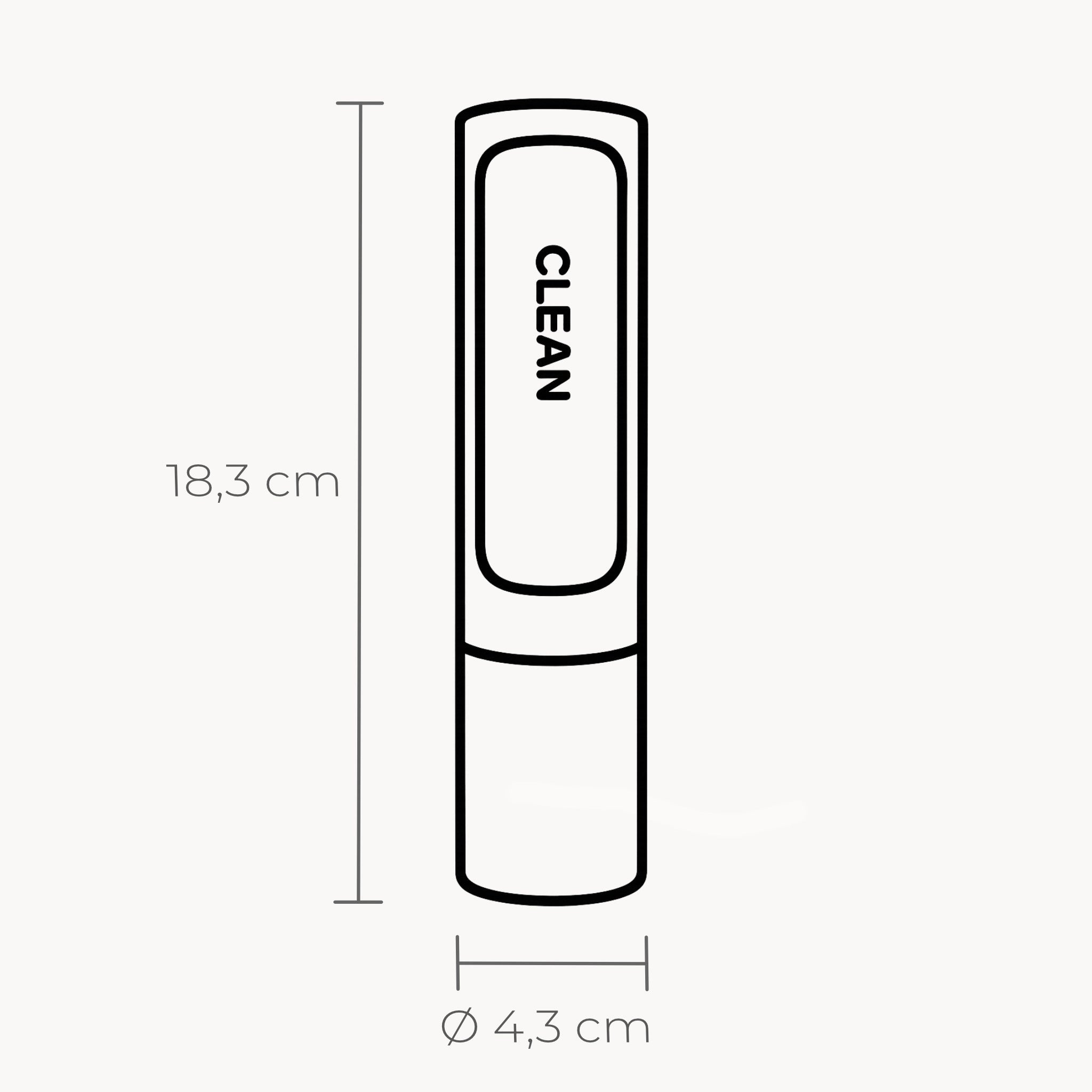 - Größe (LxBxH): 4,3 × 4,3 × 18,3 cm – kompakt und handlich.